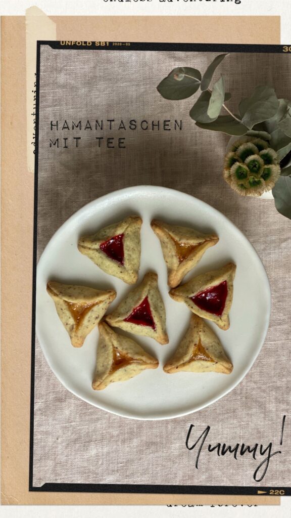 So – und jetzt gönne ich mir eine kleine Teatime mit den Hamantaschen. Herrlich!