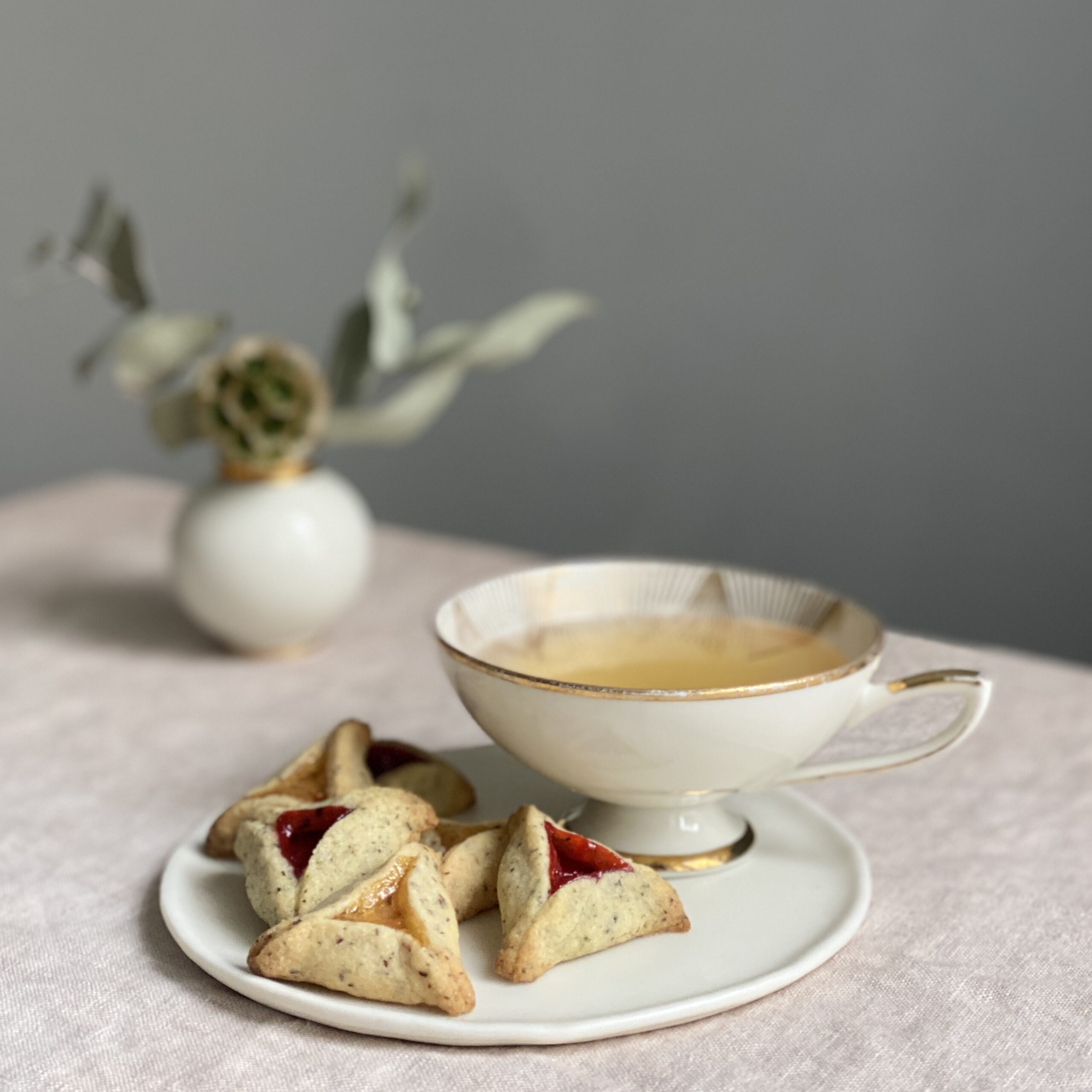 Hamantaschen ✨ Jasmintee- und Rooibos-Tee-Mürbeteigkekse mit zweierlei Füllung! Spritzig mit Lemoncurd und Blutorangenmarmelade oder frühlingshaft mit Erdbeerkonfitüre. Ein toller Keks für eine Teatime!